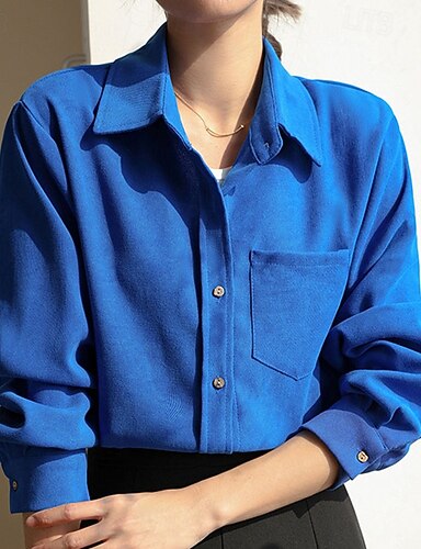 Mulheres Camisa Social Bolsos Botões Côr Sólida Tecido Vintage Diário à moda Manga Longa Colarinho de Camisa Tops regulares Diário Para Noite Azul Branco Vermelho Azul Real Verde Outono Inverno