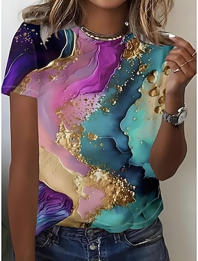 Mulheres Camiseta Imprimir Âmbar Gráfico Vintage à moda Clássico Manga Curta Gola Redonda Tops regulares Diário Azul Marinha Azul Real Roxo Dourado Verde Verão Primavera