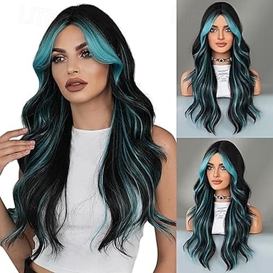 Peruca longa ondulada peruca loira ombre parte média cabelo ondulado encaracolado para mulheres Peruca loira longa de 24 polegadas com aparência natural cabelo resistente ao calor para meninas uso