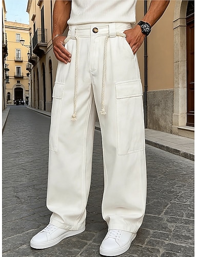 Homens Calças Cargo Calças Calças largas Com Cordão Bolso multi Bolso com aba Tecido A Prova de Vento Conforto Diário Ao ar livre Feriado Férias Roupa de rua Preto Branco Sem Elasticidade