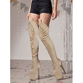 Botas femininas plataforma acima do joelho com cadarço - botas de salto alto para pole dance, cano alto, para vida noturna e festas