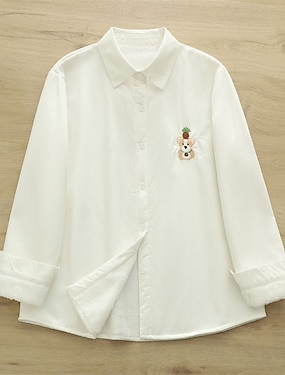Mulheres Camisa Social Animal Ativo Estilo bonito Diário Manga Longa Colarinho de Camisa Tops regulares Diário Para Noite Bordado Botões Branco Outono Inverno