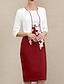 Conjunto de 2 Peças Vestido A-Camisa Mãe da Noiva Convidado de Casamento Igreja Elegante Decote em Joia Comprido até o Joelho Tecido Stretch Manga Curta Casaco Vestidos com Cor Sólida Vestido de Dia