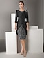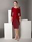 Tubinho Até os Joelhos Vestido de festa Vestido Coquetel Vestido Bodycon Manga 3/4 Ilusão Decote Elegante Convidado do casamento Cetim Renda Vestido Para Mãe dos Noivos com Apliques Franzido