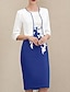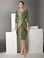 Tubinho Até os Joelhos Vestido de festa Vestido Coquetel Vestido Bodycon Meia Manga Decorado com Bijuteria Elegante Convidado do casamento Tecido Que Estica Vestido Para Mãe dos Noivos com Faixa