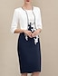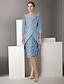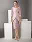Vestido Tubinho para Mãe da Noiva em Dois Peças Convidada de Casamento Formal Elegante Festa Ombros Descansados Comprimento até o Joelho Chiffon Renda Seda Imitada Manga 3/4 com Laço(s)