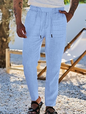 Homens Calças de linho Calças Calça verão Calças largas Calças de praia Com Cordão Cintura elástica Perna reta Tecido Conforto Respirável Comprimento total Casual Diário Feriado Férias Estilo Clássico