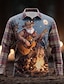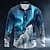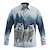 Homens Lobo Natureza e Paisagem Aurora Camisa Social camisa de botão Manga Longa Vintage retrô Ao ar livre Casual Caça Primavera Outono Aberto para a Lateral Impressão 3D camisas de colarinho Azul