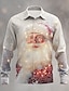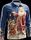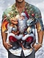 Natal Homens Papai Noel Desenhos 3D natal engraçado Camisa Social camisa de botão Manga Longa Engraçado Presentes de Natal Feriado Primavera Outono Aberto para a Lateral Impressão 3D camisas de