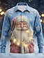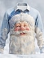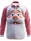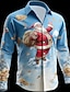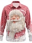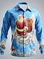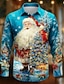 Homens Papai Noel Camisa Social Manga Longa Casual Natal Roupa Diária Para Noite Outono & inverno Aberto para a Lateral Imprimir Botão para baixo Azul Cinzento+Roxo Vermelho+Rosa Azul Claro Amarelo