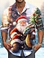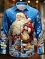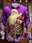 Homens Papai Noel Árvore de Natal Camisa Social Manga Longa Casual Natal Roupa Diária Para Noite Outono & inverno Aberto para a Lateral Imprimir Botão para baixo Cinzento+Roxo Amarelo Vermelho Azul