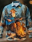 Natal Homens Animal Raposa Preguiça Camisa Social camisa de botão Manga Longa Engraçado Ao ar livre Feriado Primavera Outono Aberto para a Lateral Impressão 3D camisas de colarinho Vermelho 1
