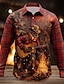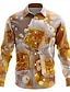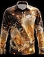 Ano Novo Homens 3D impressão Cerveja Camisa Social camisa de botão Manga Longa Moda Casual Festa Feriado Streetwear Primavera Outono Aberto para a Lateral Impressão 3D camisas de colarinho Marron