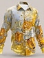 Natal Homens Papai Noel natal engraçado Moeda de ouro Camisa Social camisa de botão Manga Longa Engraçado Presentes de Natal Feriado Primavera Outono Aberto para a Lateral Impressão 3D camisas de
