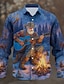 Natal Homens Papai Noel Floco de Neve Luz de Natal Camisa Social camisa de botão Manga Longa Engraçado Presentes de Natal Feriado Primavera Outono Aberto para a Lateral Impressão 3D camisas de