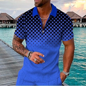 Homens Geométrica Camisas Polo Havaianas Camisa de golfe Manga Curta Camisas polo Camisas de colarinho Casual Roupa de Praia Roupas de férias Trajes de festa Impressão 3D Polo com fecho de correr de