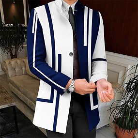 Homens Geométrica Bloco de cor jaqueta leve Casaco Manter Quente Casual O negócio Diário Impressão 3D Botões Bolso frontal Primavera Outono Inverno Entalhe Manga Longa Azul 1 Vermelho Azul
