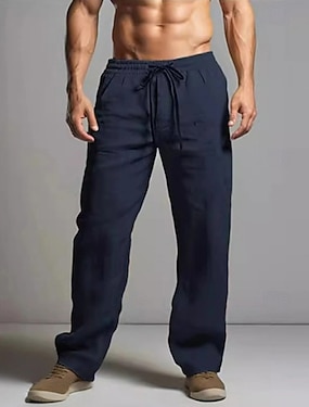 Homens Calças de linho Calças Calças largas Calças de praia Com Cordão Bolsos Cintura elástica Tecido Conforto Macio Comprimento total Casual Diário Ao ar livre Férias Moda Azul Preto Micro-Elástica