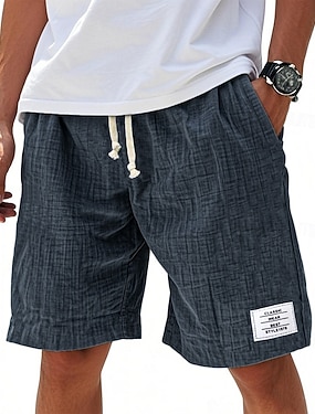 Homens Calção Shorts de linho Shorts de verão Calças Capri Com Cordão Cintura elástica Clássico Cor Sólida Exterior Comprimento do joelho Diário Para Noite à moda Estilo Clássico Delgado Cinzento