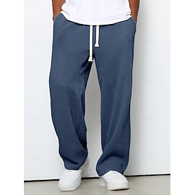 Homens Calça de moletom de perna reta Calça Waffle Com Cordão Treliça Respirável Comprimento total Casual Diário Reto Marron Escuro Preto Micro-Elástica