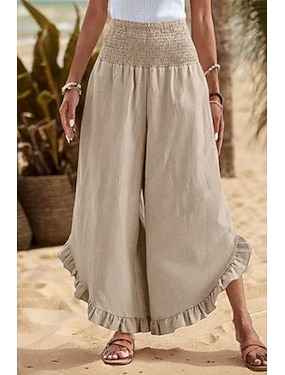 Mulheres Linho de algodão sintético Perna larga Calças Calça casual Férias Moda Roupa de rua Comprimento total Cintura Alta Tecido Com Cordão Cintura elástica Conforto Confortável Sem Elasticidade