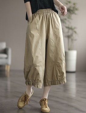 Mulheres Calças Capri Linho de algodão sintético Perna larga chinês Férias Vintage Roupa de rua Comprimento da panturrilha Cintura Média Tecido Bolsos Cintura elástica Confortável Respirável