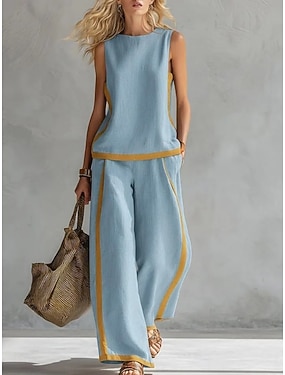 Mulheres Conjuntos de duas peças Colete Camis Sem Manga Decote Redondo Bloco de cor Moda Roupa de rua Casual Diário Ao ar livre Branco Vinho Azul Marinha Verão Normal
