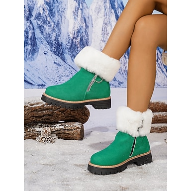 botas femininas de camurça verde com salto e punho de pele sintética, salto grosso da moda, perfeitas para férias de inverno, festas de Natal e ocasiões festivas