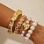 Acessórios de Samba - Pulseiras em Tom de Ouro com Pérolas para Mulheres - Conjunto Empilhável com Pérolas Barrocas Chunky