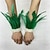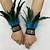 Carnaval 2026 - Acessórios de Samba do Carnaval do Rio - Manoplas de Pulso de Pena Verde Feminina com Renda de Pérola Branca