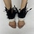 Carnaval 2026 - Acessórios de Samba do Carnaval do Rio - Manoplas de Pulso de Pena Preta Feminina com Laço de Fita Bordada Vintage
