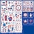 10 folhas de adesivos de tatuagem prateados para o Dia da Independência, à prova d'água e resistentes ao suor, para uso facial em festas e festivais internacionais.