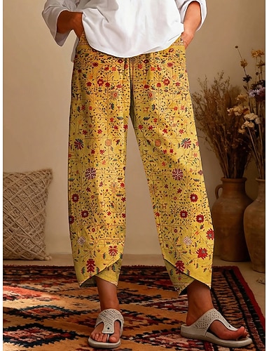 Mulheres Calças Calças Cropped Férias Vintage Casual Mimolet Cintura Alta Gráfico Estampa Geométrica Abstrato Cintura elástica Confortável Conforto Respirabilidade Sem Elasticidade Diário Ao ar livre