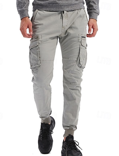 Homens Calças Cargo Corredores Calças Calças Táticas Calças de trabalho Com Cordão Bolso multi Bolso com aba Côr Sólida A Prova de Vento Conforto Comprimento total Diário Ao ar livre Feriado Roupa de