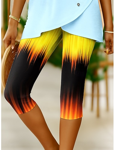 Mulheres chinês Leggings Férias Moda Roupa de rua Capris Cintura Alta Gráfico Gradiente Conforto Macio Confortável Elasticidade Alta Diário Ao ar livre Férias Fúcsia Laranja Verde cor de cinza Verão