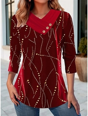 Camiseta Feminina T-Shirt Ombre Gráfica Abstrata Elegante Vintage Estilosa Manga 3/4 Decote V Tops Longos Regulares Diários Saída Botões Azul Vermelho Laranja Verde Verão Primavera Outono