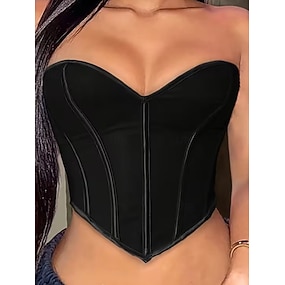 Mulheres Corset Shapewear Cincher Cintas Corpete Sexy Sensual Doce Cor imaculada Frente Única Férias Festa Rua Sem Manga ombro frio Preto Branco Vermelho Primavera Outono Moderno