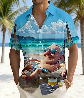 Homens Desenho Animado Velhote Camisa Social Camisa havaiana camisa de botão Manga Curta Engraçado Férias Feriado Roupa de Praia Verão Primavera Aberto para a Lateral Impressão 3D Camisa tipo linho