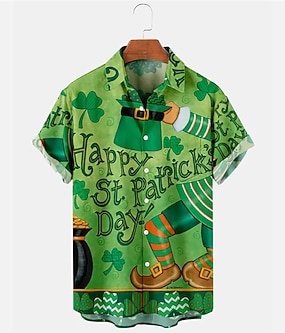 Camisa Havaiana Impressão 3D do Dia de São Patrício para Homens Camisa de Botão Manga Curta Camisa para Festa Tamanho S A 3XL
