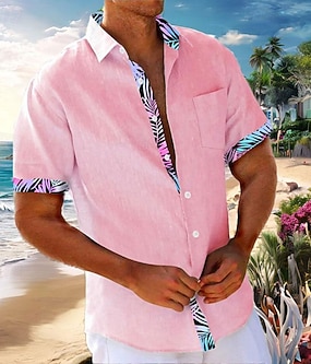 Homens Coqueiro Camisa Social Camisa de linho camisa de botão Manga Curta Havaiana Recorrer Estilo Praia Férias Diário Feriado Verão Aberto para a Lateral camisas de colarinho Rosa Azul Verde