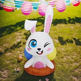 Decoração inflável de Páscoa com luzes LED, 1,75 m/5,74 pés, coelho, ovo de Páscoa, cenoura, carro, para uso interno/externo, pátio, jardim, gramado, festa, atmosfera festiva, adereços decorativos com luzes.