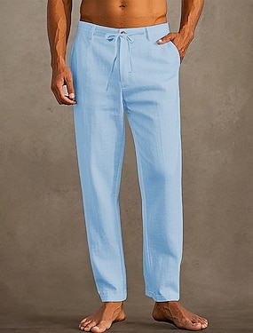 Homens Calças de linho Calças Calça verão Calças de praia Bolsos Tecido Conforto Respirável Férias Diário Feriado Havaiana Boho Branco Azul Céu
