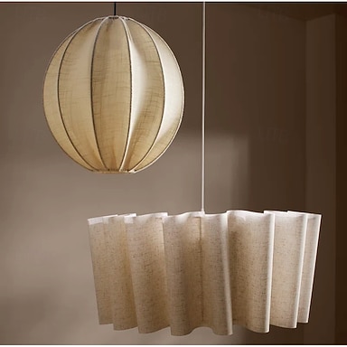 Lustre pendente ondulado de 40/60 cm com cúpula em tecido de linho bege e design exclusivo com babados, ideal para sala de jantar, quarto e sala de estar. 110-240 V.