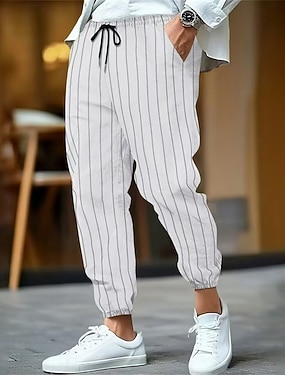 Homens Calças de linho de algodão Calça esportiva Calças Esportivas Corredor Calças Bolsos Cintura elástica Com Cordão Listrado Conforto Esportes Diário Moda Casual Preto Branco Micro-Elástica