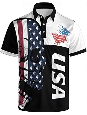 4 de julho de 2026 250º Homens American US Flag Pólo Manga Curta Camisas polo Camisas de colarinho Casual Ao ar livre Escola Roupa Diária Home Wear Impressão 3D Verão Primavera Outono Preto