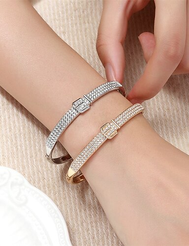 Bracelete de Strass Feminino Ouro Prateado Clássico Moda Joia Luxuosa em Liga Para Presente em Festa de Casamento à Noite para impressionar