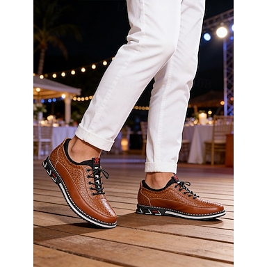 Homens Esportivo Casual Diário Pele PU Confortável Respirável Com Cadarço Castanho avermelhado Amarelo Verde Claro Verão Primavera Todas as Estações
