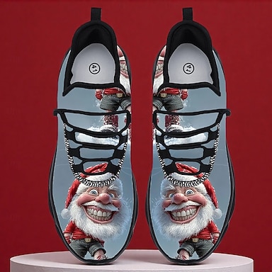 Tênis masculino divertido e "feio" de Natal, com estampa 3D de personagem de desenho animado e flocos de neve festivos.