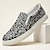 Tênis masculino slip-on casual preto e branco estampado, leve e confortável para caminhada, ideal para uso diário, viagens, looks de fim de semana, streetwear e lazer ao ar livre.