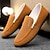 Mocassins masculinos de camurça marrom, modelo slip-on, casuais e leves, ideais para uso diário, viagens, escritório, looks de fim de semana e um estilo casual elegante e descontraído.
